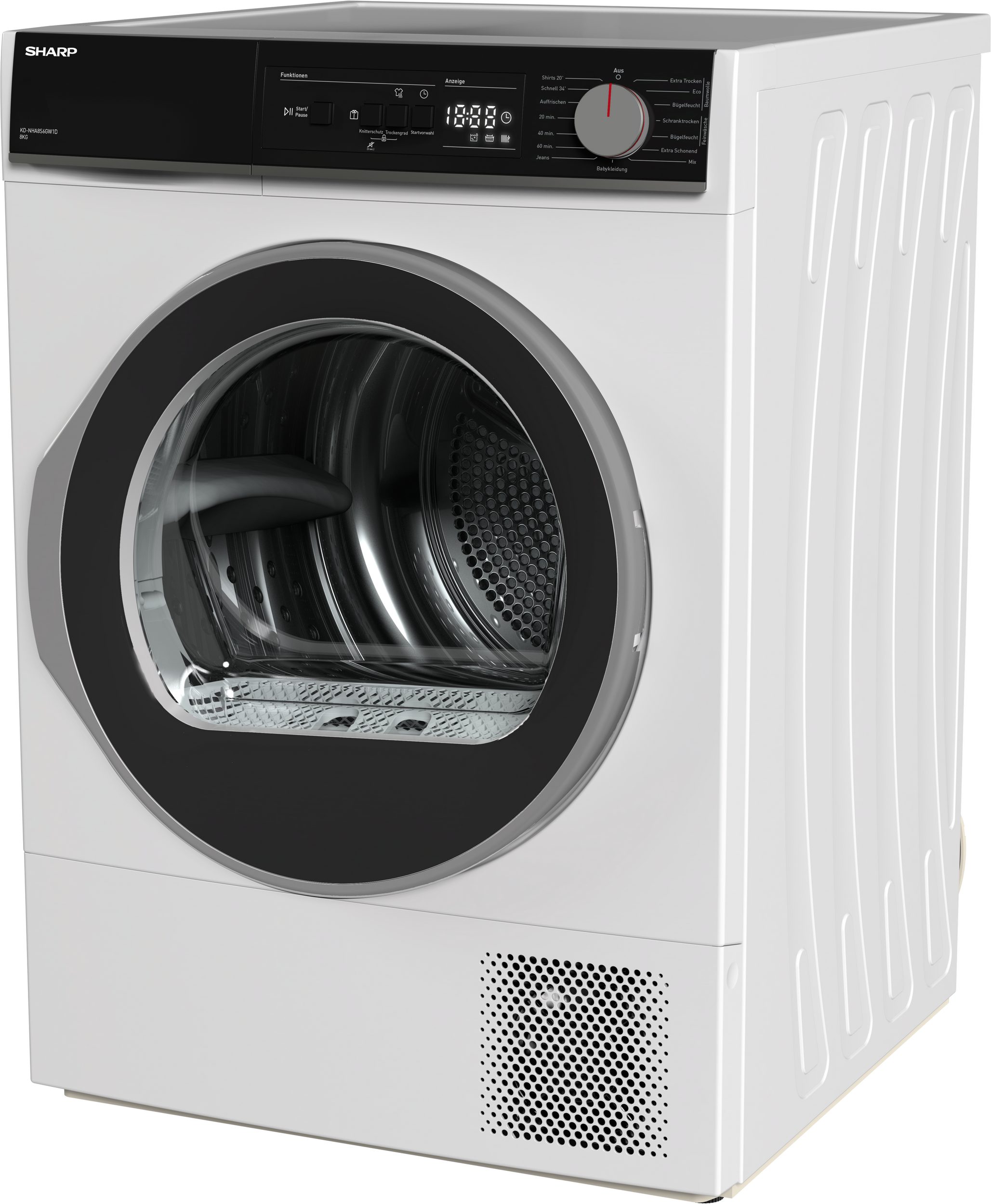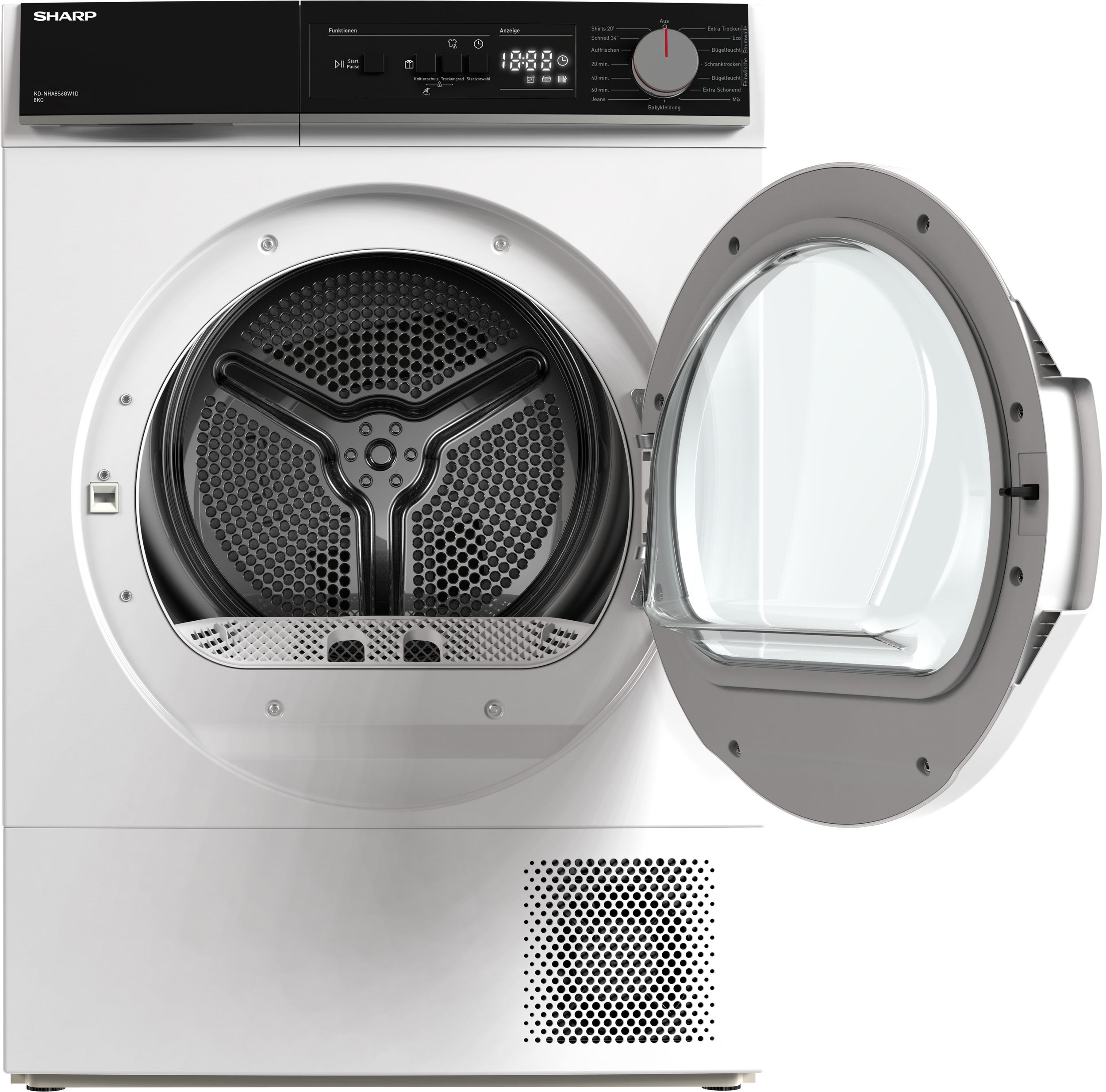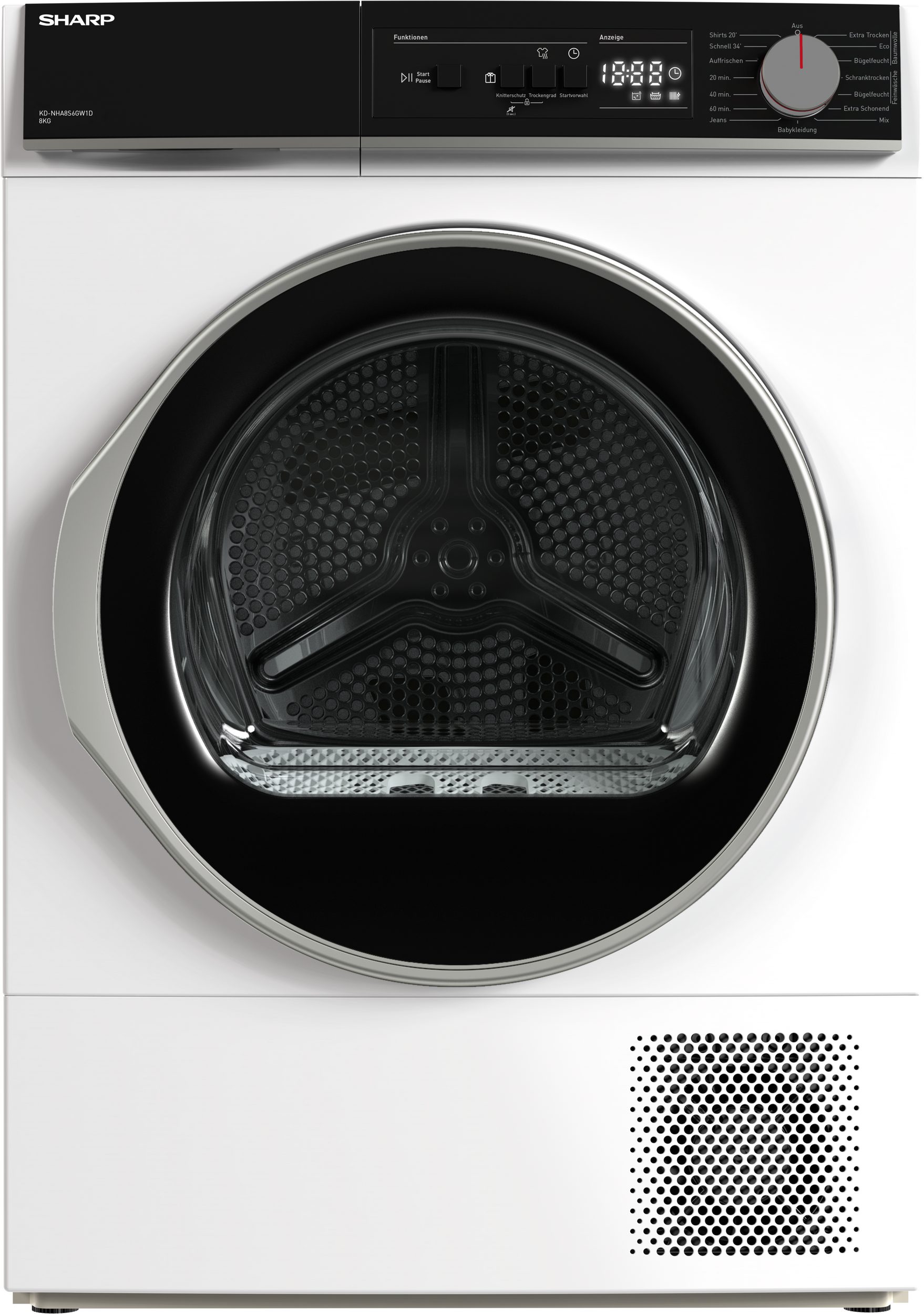 Sharp SHARP KD-NHA8S6GW1D-EE mašina za sušenje – 8 kg Kapacitet – Energetska efikasnost D / 20 minuta brzo sušenje – 8 Tehnologija sušenja senzora – Two Way Tumbling – Velika vrata sa velikim prozorom – Dodirni LED displej odbrojavanja – Drum Light